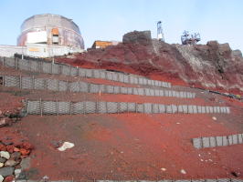 斜面の崩壊を防ぐため、鋼製の壁(土留め)を設置します。